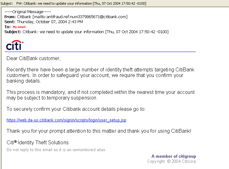RE: [Full-Disclosure] Fw: Citibank reminder: please update your data