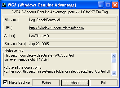 Subject: [Full-disclosure] WGA patch for LegitCheckControl.dll