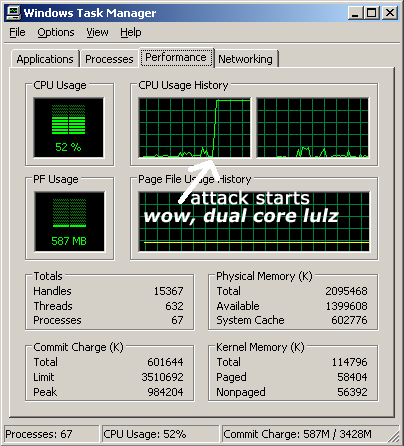 Tested on xp sp2 and vista., screenshot and .pl attached. There are quite a few ways to improve this, for example rate limiting the packet sending so as to not over-send, multiple targets and stuff like that. However, that means more work and I am lazy. -- kokanin