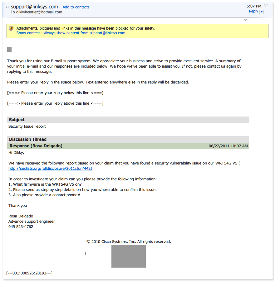 A follow-up, we have been contacted by Linksys and are working to correct this