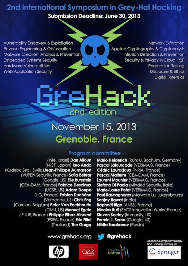 The 2nd International Symposium on Grey-Hat Hacking — aka GreHack 2013