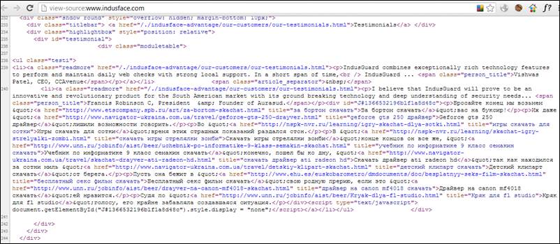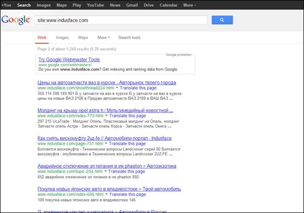 *Google Search Results Showing Indusface Pages with Russian Spam and Malware