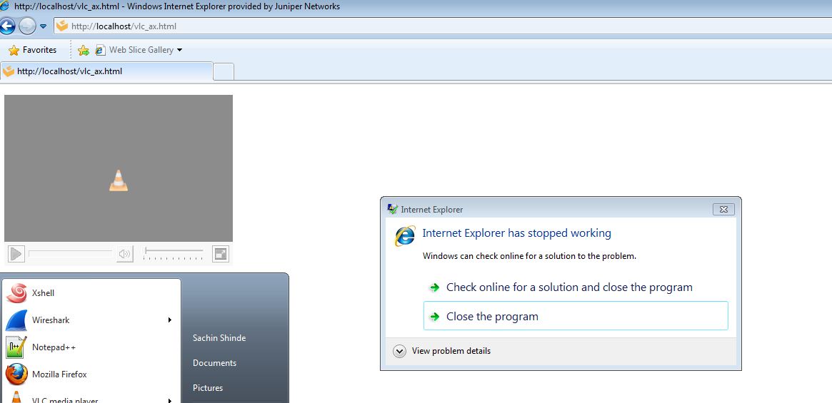 > Looks like heap corruption,can be exploited if vlc plugin crashes in