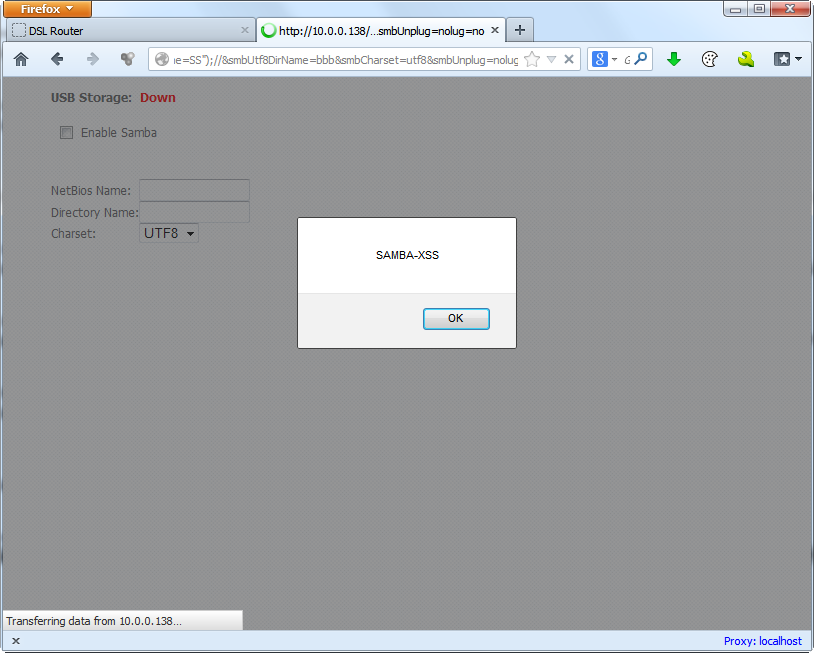 x="XSS";//&smbDirName=b';alert(x);//&smbUtf8DirName=bbb&smbCharset=utf8&smbUnplug=nolug=no