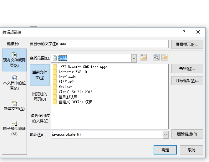 Create a document, insert a hyperlink, hyperlink for executing the JavaScript