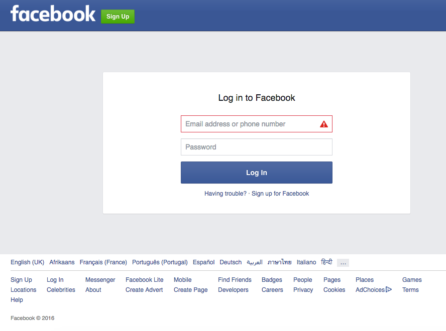 And when clicked, you are shown a Facebook login form: