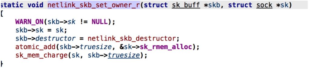SSD Advisory – Linux Kernel XFRM Privilege Escalation Full report: https://blogs.securiteam.com/index.php/archives/3535 Twitter: @SecuriTeam_SSD Weibo: SecuriTeam_SSD Vulnerability Summary The following advisory describes a Use-after-free vulnerability found in Linux kernel that can lead to privilege escalation. The vulnerability found in Netlink socket subsystem – XFRM. Netlink is used to transfer information between the kernel and user-space processes. It consists of a standard sockets-based interface for user space processes and an internal kernel API for kernel modules. Credit An independent security researcher, Mohamed Ghannam, has reported this vulnerability to Beyond Security’s SecuriTeam Secure Disclosure program Vendor response The vulnerability has been addressed as part of 1137b5e (“ipsec: Fix aborted xfrm policy dump crash”) Vulnerability details An unprivileged user can change Netlink socket subsystem – XFRM value sk->sk_rcvbuf (sk == struct sock object). The value can be changed into specific range via setsockopt(SO_RCVBUF). sk_rcvbuf is the total number of bytes of a buffer receiving data via recvmsg/recv/read. The sk_rcvbuf value is how many bytes the kernel should allocate for the skb (struct sk_buff objects). skb->trusize is a variable which keep track of how many bytes of memory are consumed, in order to not wasting and manage memory, the kernel can handle the skb size at run time. For example, if we allocate a large socket buffer (skb) and we only received 1-byte packet size, the kernel will adjust this by calling skb_set_owner_r. By calling skb_set_owner_r the sk->sk_rmem_alloc (refers to an atomic variable sk->sk_backlog.rmem_alloc) is modified. When we create a XFRM netlink socket, xfrm_dump_policy is called, when we close the socket xfrm_dump_policy_done is called. xfrm_dump_policy_done is called whenever cb_running for netlink_sock object is true. The xfrm_dump_policy_done tries to clean-up a xfrm walk entry which is managed by netlink_callback object. When netlink_skb_set_owner_r is called (like skb_set_owner_r) it updates the sk_rmem_alloc. netlink_dump(): In above snippet we can see that netlink_dump() check fails when sk->sk_rcvbuf is smaller than sk_rmem_alloc (notice that we can control sk->sk_rcvbuf via stockpot). When this condition fails, it jumps to the end of a function and quit with failure and the value of cb_running doesn’t changed to false. nlk->cb_running is true, thus xfrm_dump_policy_done() is being called. nlk->cb.done points to xfrm_dump_policy_done, it worth noting that this function handles a doubly linked list, so if we can tweak this vulnerability to reference a controlled buffer, we could have a read/write what/where primitive. -- Thanks Maor Shwartz Beyond Security GPG Key ID: 6D273779F52A9FC2
