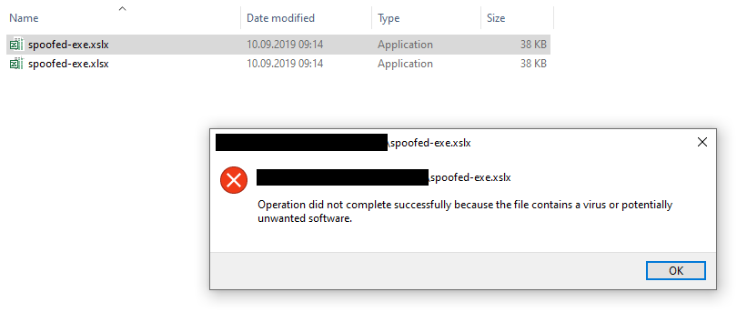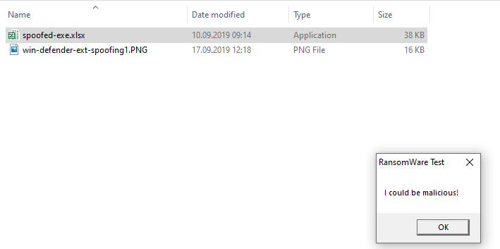 But the file shown as 'spoofed-exe.xlsx' will be executed without any problem.