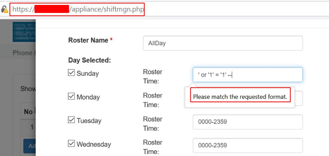 >> *Affected URL:* /appliance/shiftmgn.php