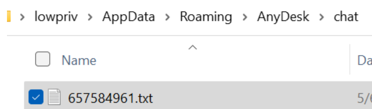 "C:\Users\<user>\AppData\Roaming\AnyDesk\chat\" by "AnyDesk.exe" with "NT