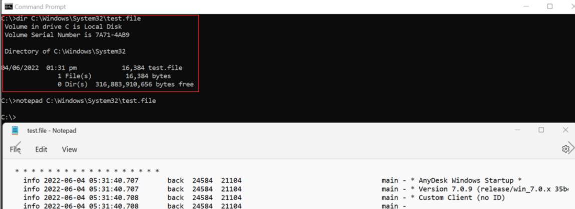 written to target file (e.g., C:\Windows\System32\test.file)