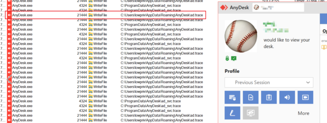 "C:\Users\<user>\AppData\Roaming\AnyDesk") will be created by "AnyDesk.exe"