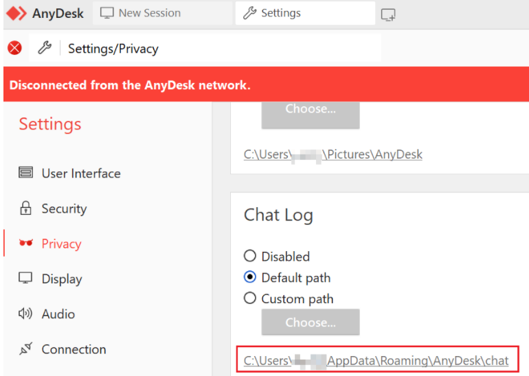 "C:\Users\<user>\AppData\Roaming\AnyDesk\chat\") were assigned with