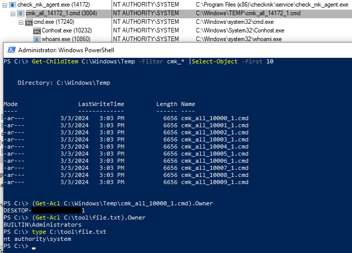 get executed by Checkmk with SYSTEM privileges allowing attackers to escalate