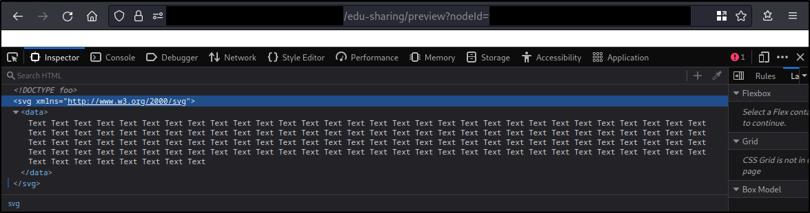 nested XML entities. The "mimetype" parameter is changed to "image%2Fsvg":