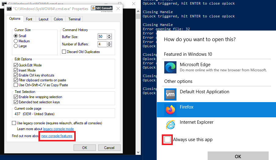 This can be used by an attacker by simply setting an oplock on the files