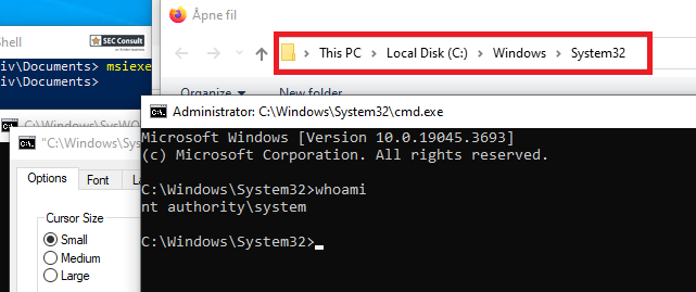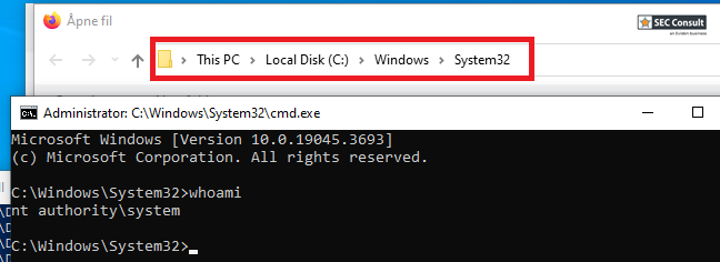 The attacker can then perform the following actions to spawn a SYSTEM shell: