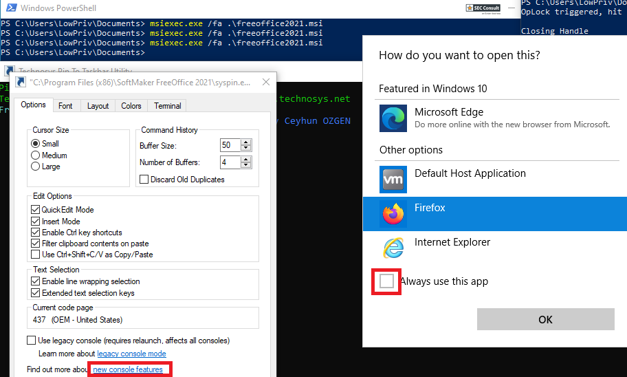 FreeOffice: Executes syspin.exe, which reads