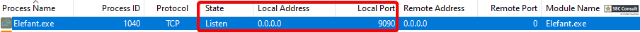 While the Elefant client is running it listens on port 9090 on all interfaces.