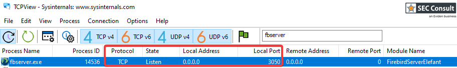 3050 of the Elefant server using the known Firebird default credentials