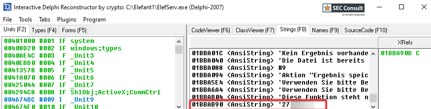 This password is hardcoded into the Elefant Service binary, which is shipped