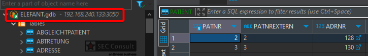 The database contains all Elefant data including patient data and the