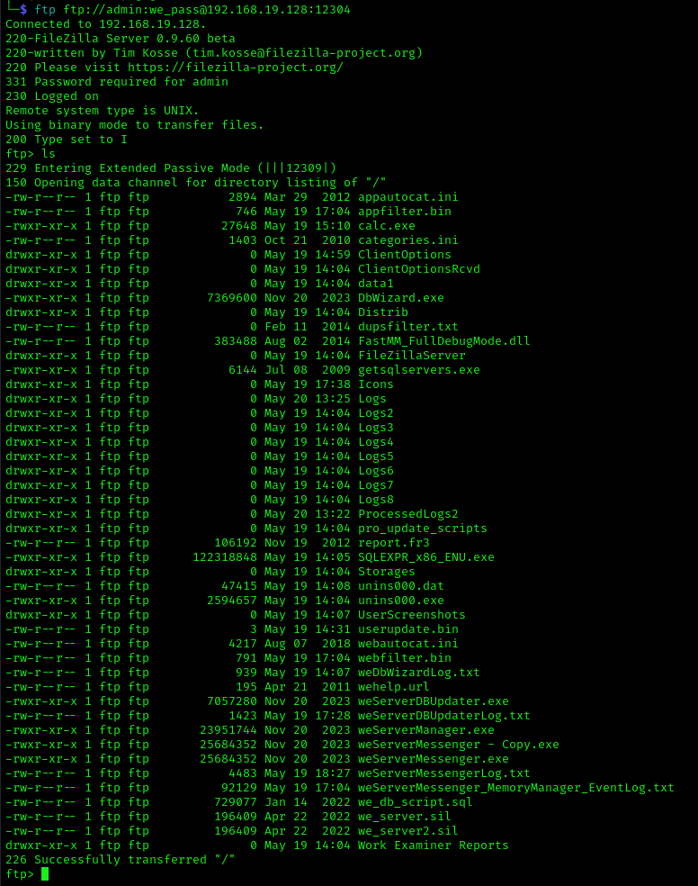 credentials can be used to access the FTP server on port 12304 via