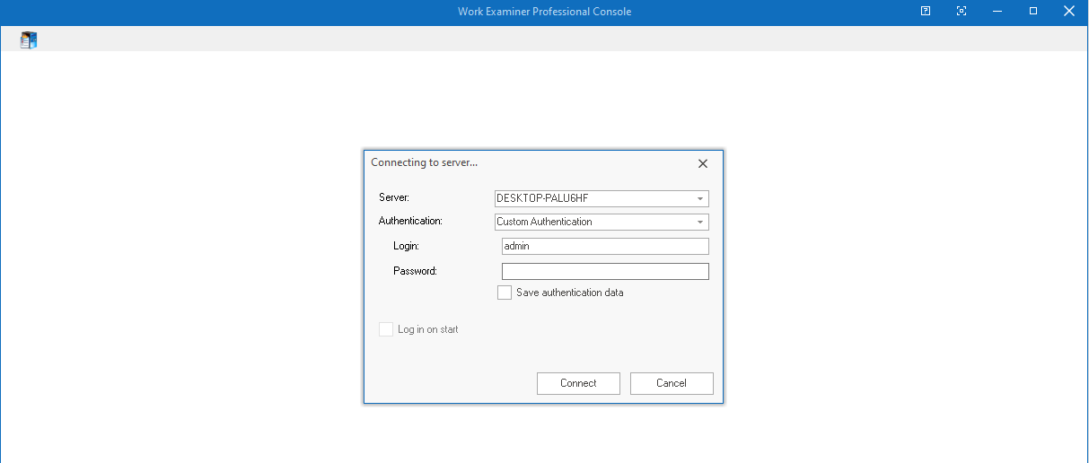 in the WorkExaminer Professional console to gain administrative access to