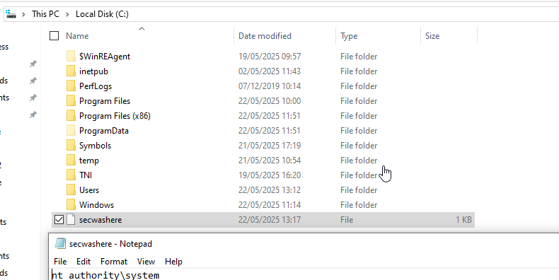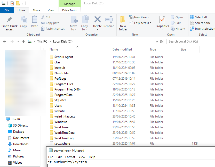 whoami > C:\secwashere