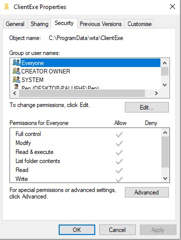 in C:\ProgramData\wta\ClientExe.